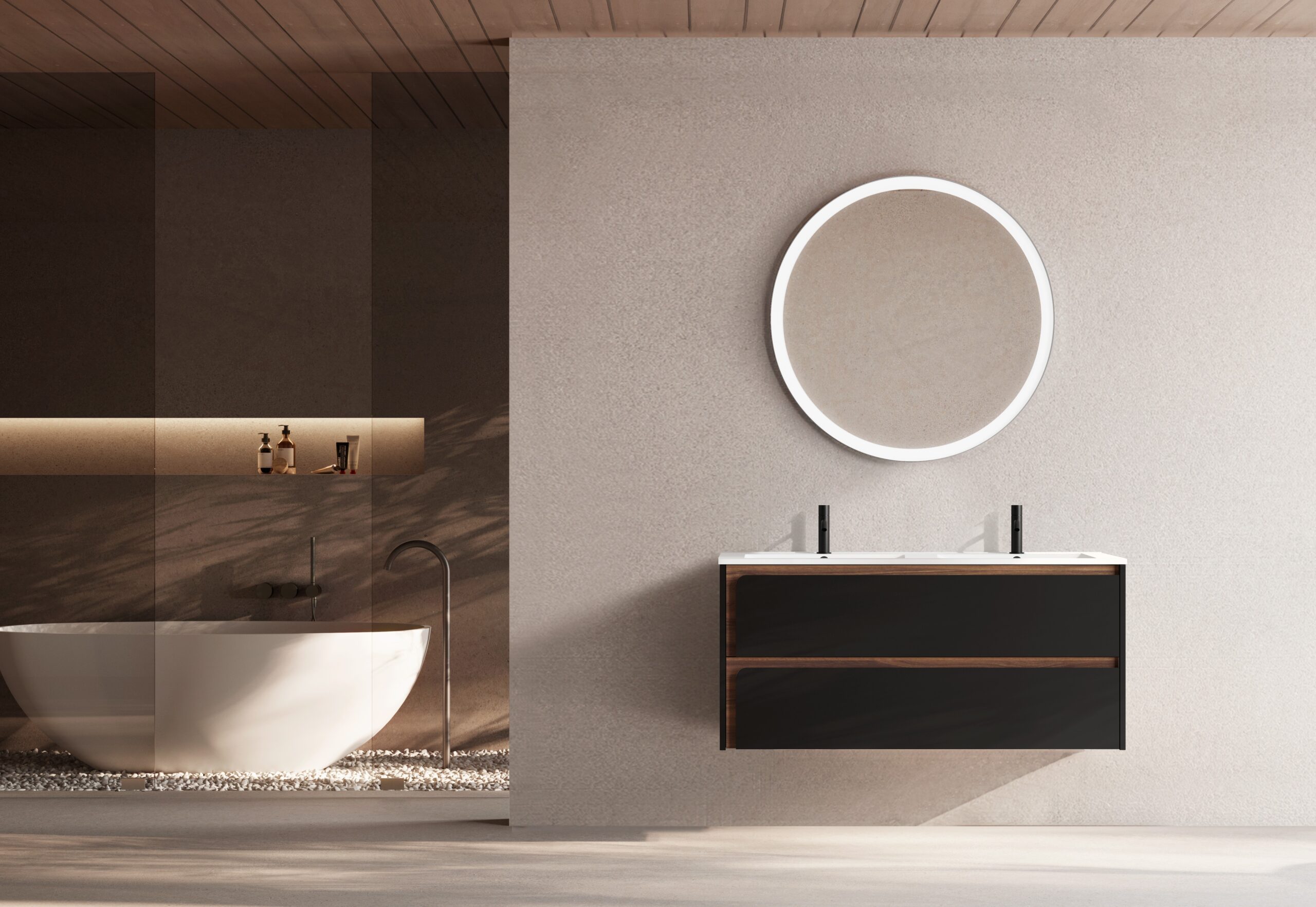 Possibilidade de lavatório integral ou tampo e lavatório de pousar