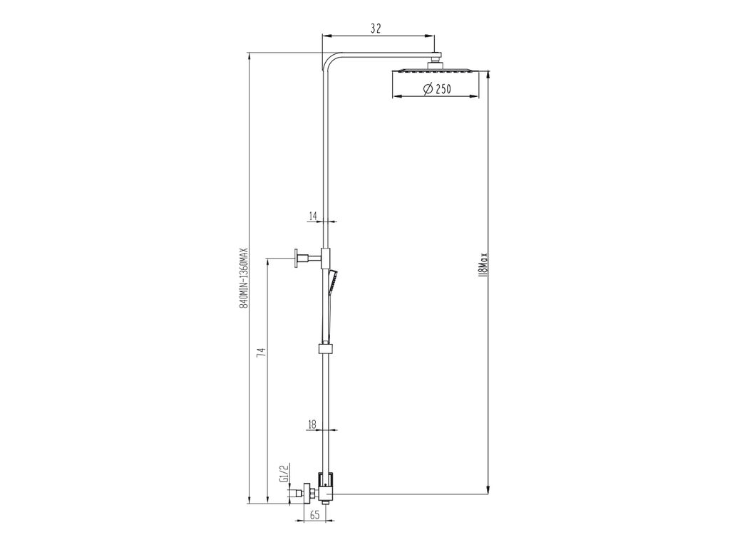 Haste chuveiro fabricada em latão com chuveiro superior extraplano quadrado de 25×25 e flexível anti-torsão com cartucho cerâmico de 40 sedal.