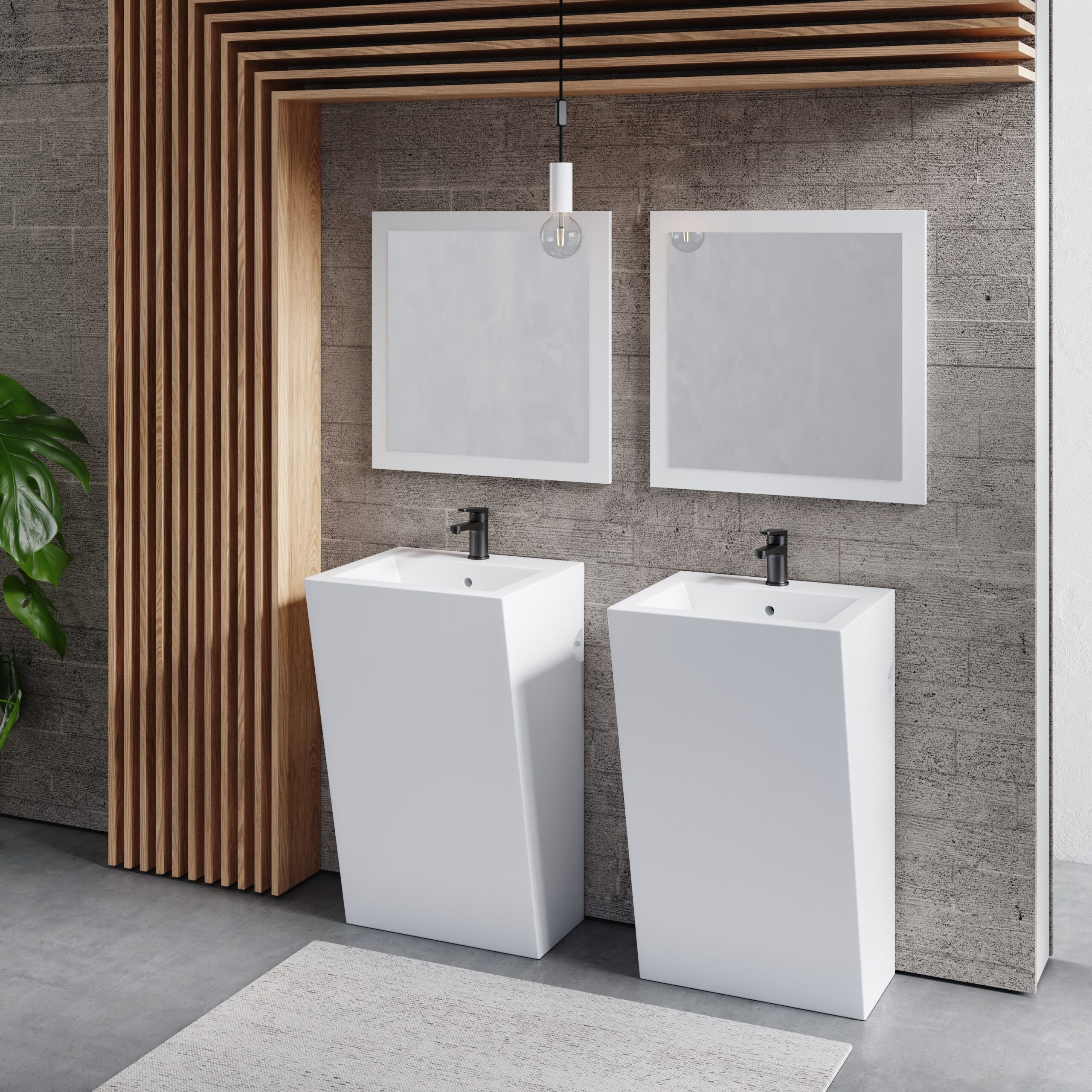 Lavatório ao chão em cerâmica c/furação para torneira linhas retas.