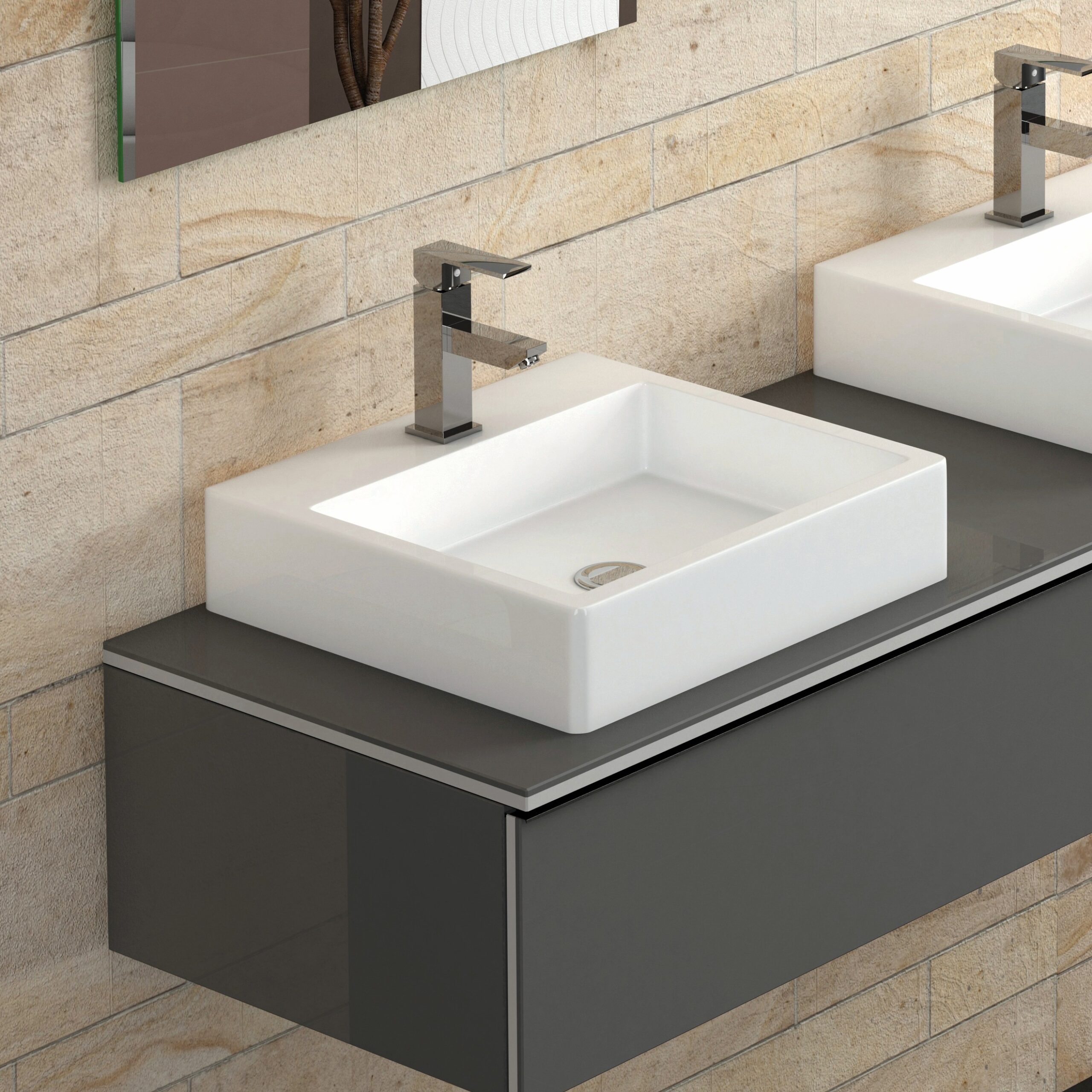 Lavatório de pousar em cerâmica brilho c/furação para torneira.